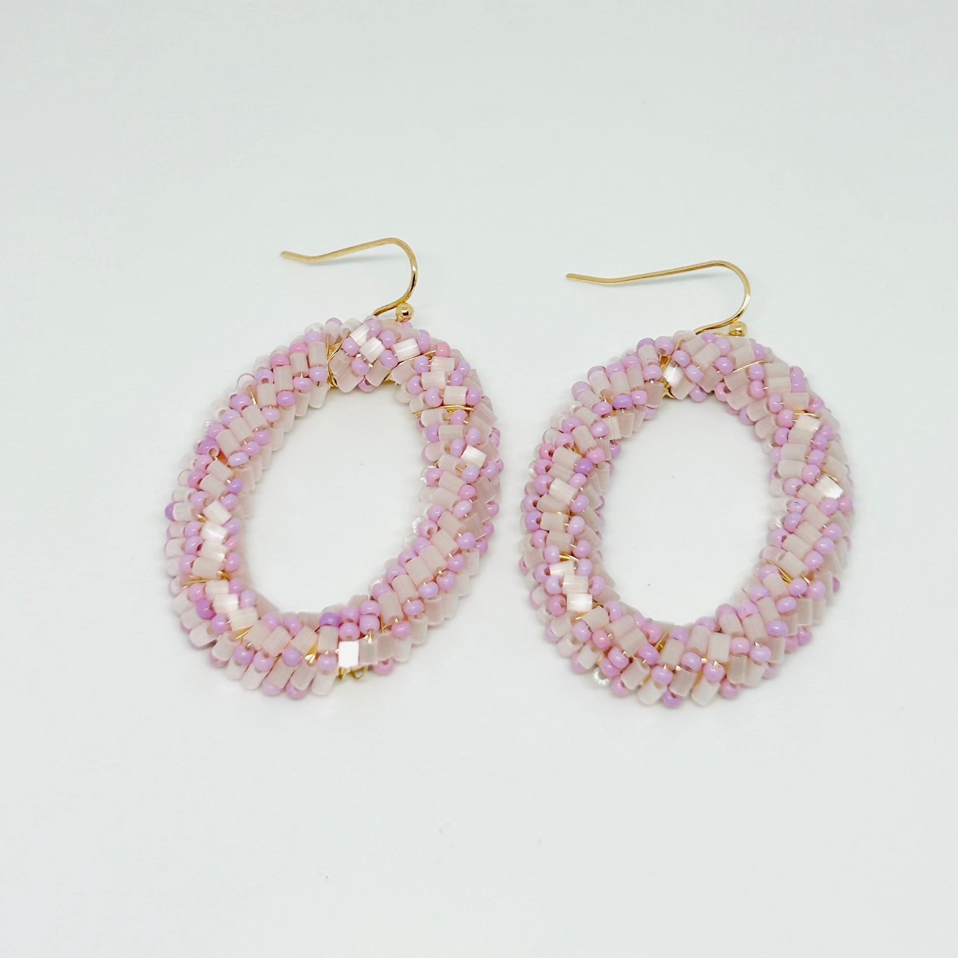 Add a delicate touch of charm to your everyday style with these blush pink beaded hoop earrings. Lovingly handmade with intricate detail, each hoop features tiny blush beads woven together to create a soft, textured look that’s both elegant and playful.