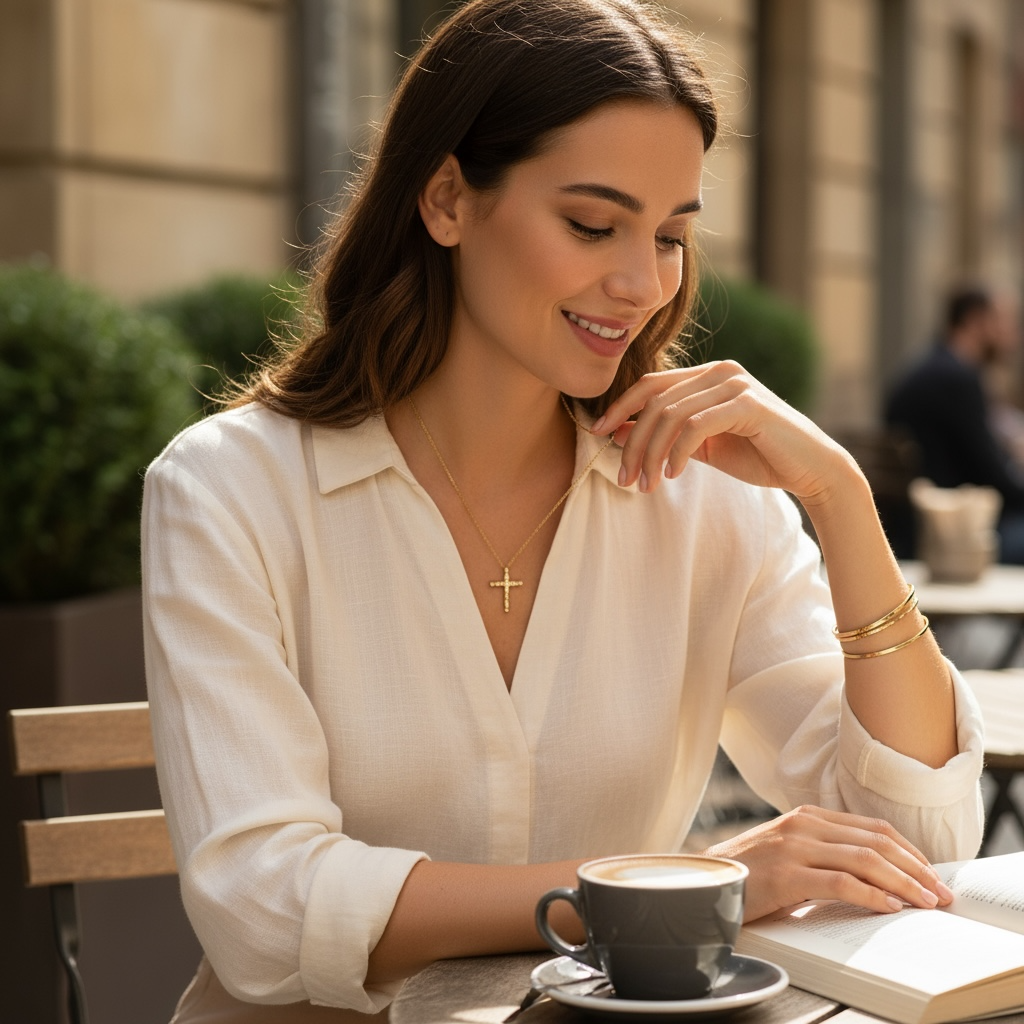 Carry a symbol of faith and elegance with this beautifully crafted cross necklace. Inspired by women of faith, this timeless piece is designed to remind you of strength, hope, and grace every day. Its minimalist yet sophisticated design makes it perfect for daily wear or as a meaningful gift for someone special.